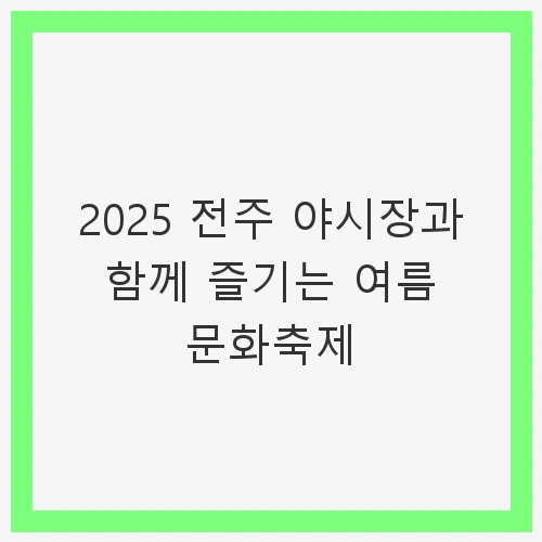 여름이 다가오면서 전주에서는 매년 특별한 문화적 향연이 펼쳐진다. 바로 "2025 전주 야시장과 함께 즐기는 여름 문화축제"이다. 이 축제는 단순한 먹거리와 음주를 넘어, 전주의 독특한 문화와 전통을 함께 경험할 수 있는 소중한 기회다. 전주 곳곳에서 모여든 사람들은 맥주와 함께 다양한 음식, 공연, 그리고 체험을 통해 여름밤을 더욱 특별하게 만들어 간다. 여름의 열기가 느껴지는 이 시점, 당신은 전주에서 어떤 문화적 경험을 즐길 준비가 되어있는가?