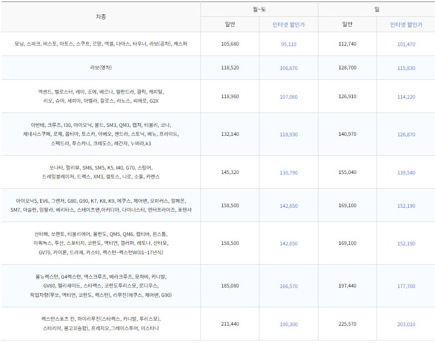 - 국산 차량: 150,000원