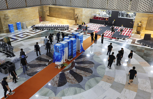 국회 로텐더홀은 이번 취임식의 공식 장소로 확정되었으며, 연단 설치와 같은 현장 준비가 한창입니다.